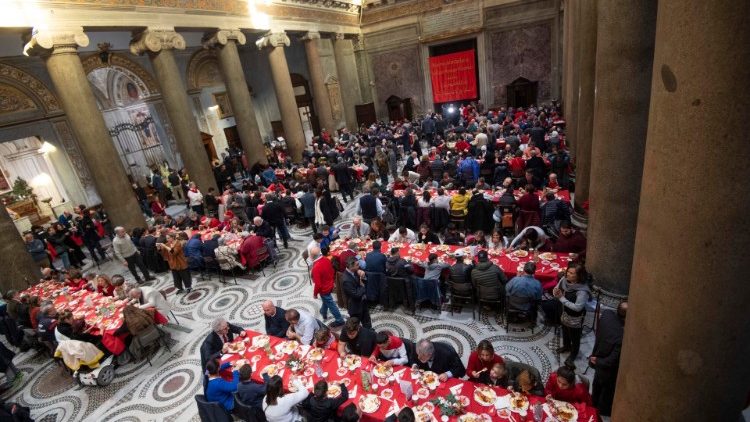 உரோம் நகரில் இயங்கிவரும் சாந்த் எஜிதியோ அமைப்பு, திரஸ்தேவரேயில் உள்ள சாந்தா மரியா பெருங்கோவிலில் வறியோருக்கு மதிய விருந்தை வழங்கியது என்றும், உலகின் பல நகரங்களில், இவ்வமைப்பினர், 2,40,000த்திற்கும் அதிகமான வறியோருக்கு கிறிஸ்மஸ் விருந்தை வழங்கினர் என்றும் இவ்வமைப்பின் அறிக்கையொன்று கூறுகிறது