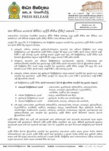 கொழும்பு, கம்பஹா, களுத்துறை மற்றும் புத்தளம் மாவட்டங்களின் சில காவல்துறை பிரிவுகள் தவிர்ந்த ஏனைய காவல்துறை பிரிவுகளில் எதிர்வரும் 22 ஆம் திகதி காலை 5 மணிக்கு ஊரடங்கு சட்டம் தளர்த்தப்பட்டு அன்று இரவு 8 மணிக்கு மீள அமுல்படுத்தப்படும்.