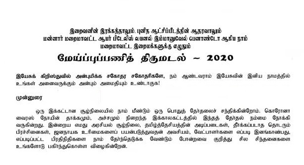 செய்திகள் ஜூலை 23 : நற்செய்தி வாசகம் July 22, 2020 விண்ணரசின் மறைபொருளை அறிய... செய்திகள் எதிர்வரும் பொதுத்தேர்தல் 2020 பற்றி மன்னார் மறைமாவட்ட ஆயர் July 21, 2020 Source: New feed செய்திகள் நற்செய்தி அறிவிப்புப்பணியில் பங்குதள சமூகத்தின் இடம் July 21, 2020 நற்செய்தி அறிவிப்புப்பணியில்... செய்திகள் உள்ளத்தில் நம்பிக்கையூட்டும் கடவுளின் பொறுமை July 21, 2020 புனித பேதுரு பெருங்கோவில்... செய்திகள் நற்செய்தி வாசக மறையுரை (ஜூலை 22) July 21, 2020 பொதுக்காலம் பதினாறாம் வாரம்... செய்திகள் ஜூலை 22 : நற்செய்தி வாசகம் July 21, 2020 ஏனம்மா அழுகிறாய்? யாரைத் தேடுகிறாய்?... செய்திகள் கன்னாட்டி வடகாடு புனித அந்தோனியார் ஆலயம் ஆயரால் திறந்துவைப்பு July 21, 2020 மன்னார் மறைமாவட்ட ஆயர் மேதகு... செய்திகள் பிறரன்பின் அடிப்படையில் இறுதி தீர்ப்பு July 19, 2020 நாம் இவ்வுலகில் காட்டும் பிறரன்பு... 1 2 3 4 5 6 7 8 9 10 11 12 13 14 15 16 17 18 19 20 21 22 23 24 25 26 27 28 29 30 31 32 33 34 35 36 37 38 39 40 41 42 43 44 45 46 47 48 49 50 51 52 53 54 55 56 57 58 59 60 61 62 63 64 65 66 67 68 69 70 71 72 73 74 75 76 77 78 79 80 81 82 83 84 85 86 87 88 89 90 91 92 93 94 95 96 97 98 99 100 101 102 103 104 105 106 107 108 109 110 111 112 113 114 115 116 117 118 119 120 121 122 123 124 125 126 127 128 129 130 131 132 133 134 135 136 137 138 139 140 141 142 143 144 145 146 147 148 149 150 151 152 153 154 155 156 157 158 159 160 161 162 163 164 165 166 167 168 169 170 171 172 173 174 175 176 177 178 179 180 181 182 183 184 185 186 187 188 189 190 191 192 193 194 195 196 197 198 199 200 201 202 203 204 205 206 207 208 209 210 211 212 213 214 215 216 217 218 219 220 221 222 223 224 225 226 227 228 229 230 231 232 233 234 235 236 237 238 239 240 241 242 243 244 245 246 247 248 249 250 251 252 253 254 255 256 257 258 259 260 261 262 263 264 265 266 267 268 269 270 271 272 273 274 275 276 277 278 279 280 281 282 283 284 285 286 287 288 289 290 291 292 293 294 295 296 297 298 299 300 301 302 303 304 305 306 307 308 309 310 311 312 313 314 315 316 317 318 319 320 321 322 323 324 325 326 327 328 329 330 331 332 333 334 335 336 337 338 339 340 341 342 343 344 345 346 347 348 349 350 351 352 353 354 355 356 357 358 359 360 361 362 363 364 365 366 367 368 369 370 371 372 373 374 375 376 377 378 379 380 381 382 383 384 385 386 387 388 389 390 391 392 393 394 395 396 397 398 399 400 401 402 403 404 405 406 407 408 409 410 411 412 413 414 415 416 417 418 419 420 421 422 423 424 425 426 427 428 429 430 431 432 433 434 435 436 437 438 439 440 441 442 443 444 445 446 447 448 449 450 451 452 453 454 455 456 457 458 459 460 461 462 463 464 465 466 467 468 469 470 471 472 473 474 475 476 477 478 479 480 481 482 483 484 485 486 487 488 489 490 491 492 493 494 495 496 497 498 499 500 501 502 503 504 505 506 507 508 509 510 511 512 513 514 515 516 517 518 519 520 521 522 523 524 525
